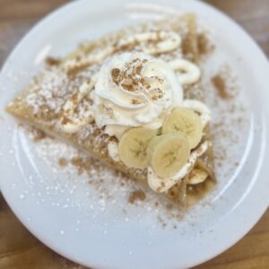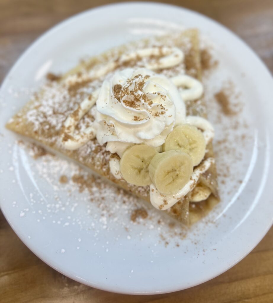Our Cinnamon Brown Sugar Banana Cream Crêpe is like a warm hug from your childhood — soft bananas, brown sugar, and a swirl of cinnamon topped with dreamy cream. The kind of cozy you can taste.