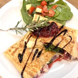 Melted brie, tangy cranberry, and a drizzle of balsamic — with chicken for that hearty, holiday twist.